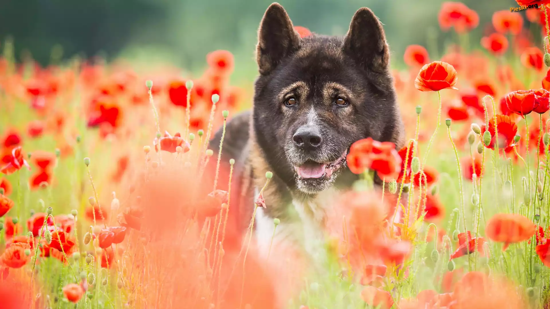 Akita amerykańska, Brązowy, Pies, Maki, Pieski