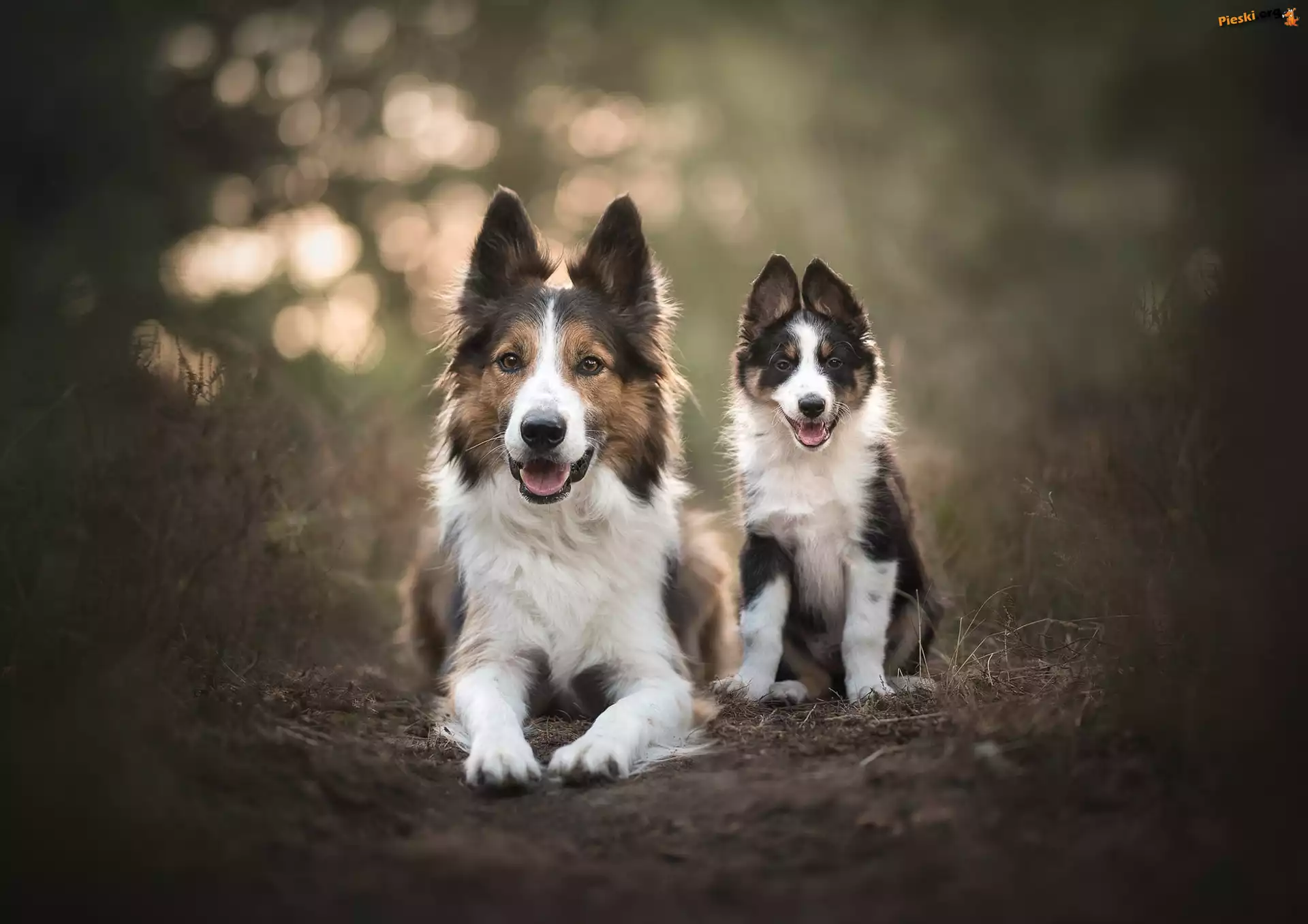 Border collie, Dwa, Psy, Szczeniak, Pieski