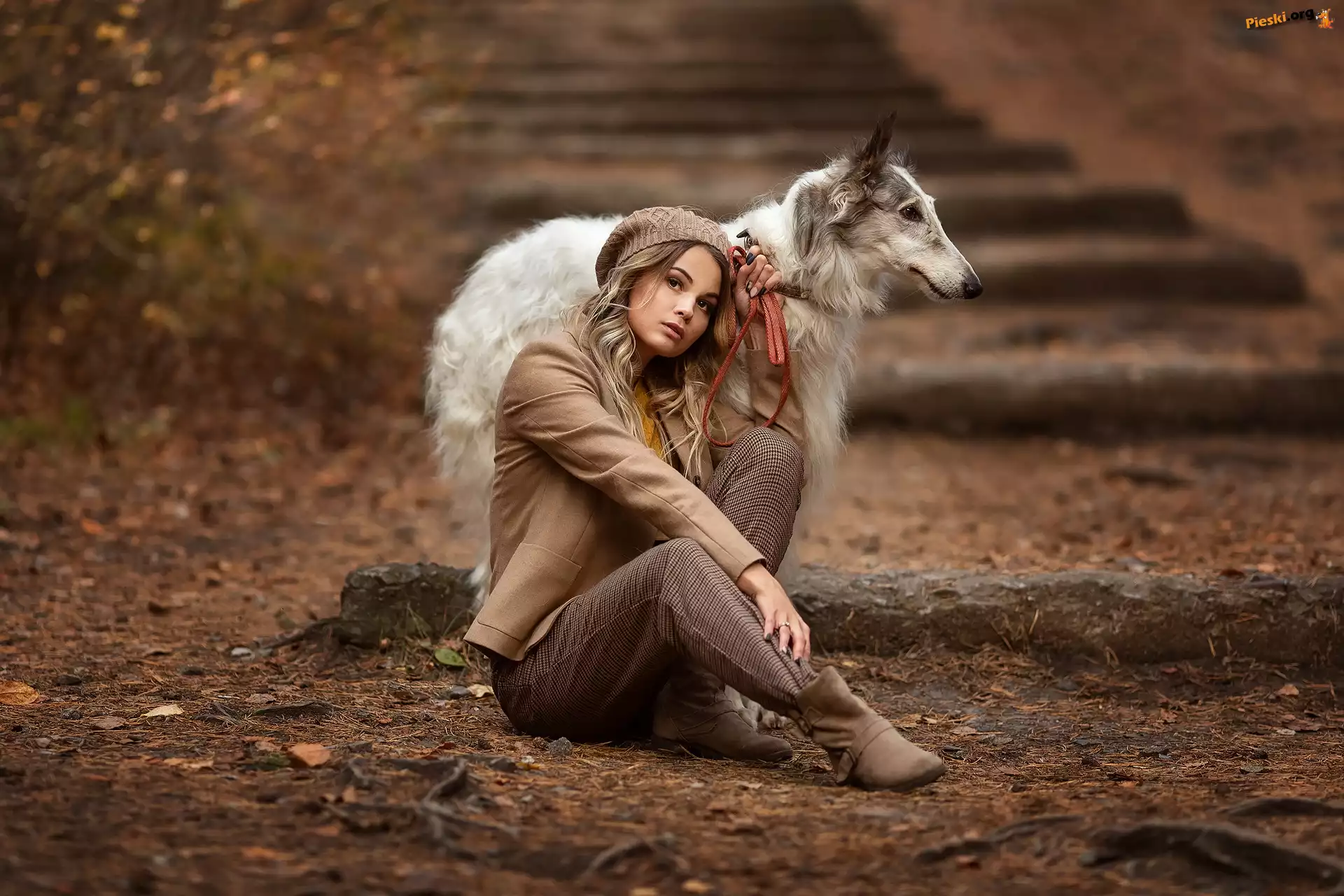 Borzoj, Kobieta, Pies, Chart rosyjski