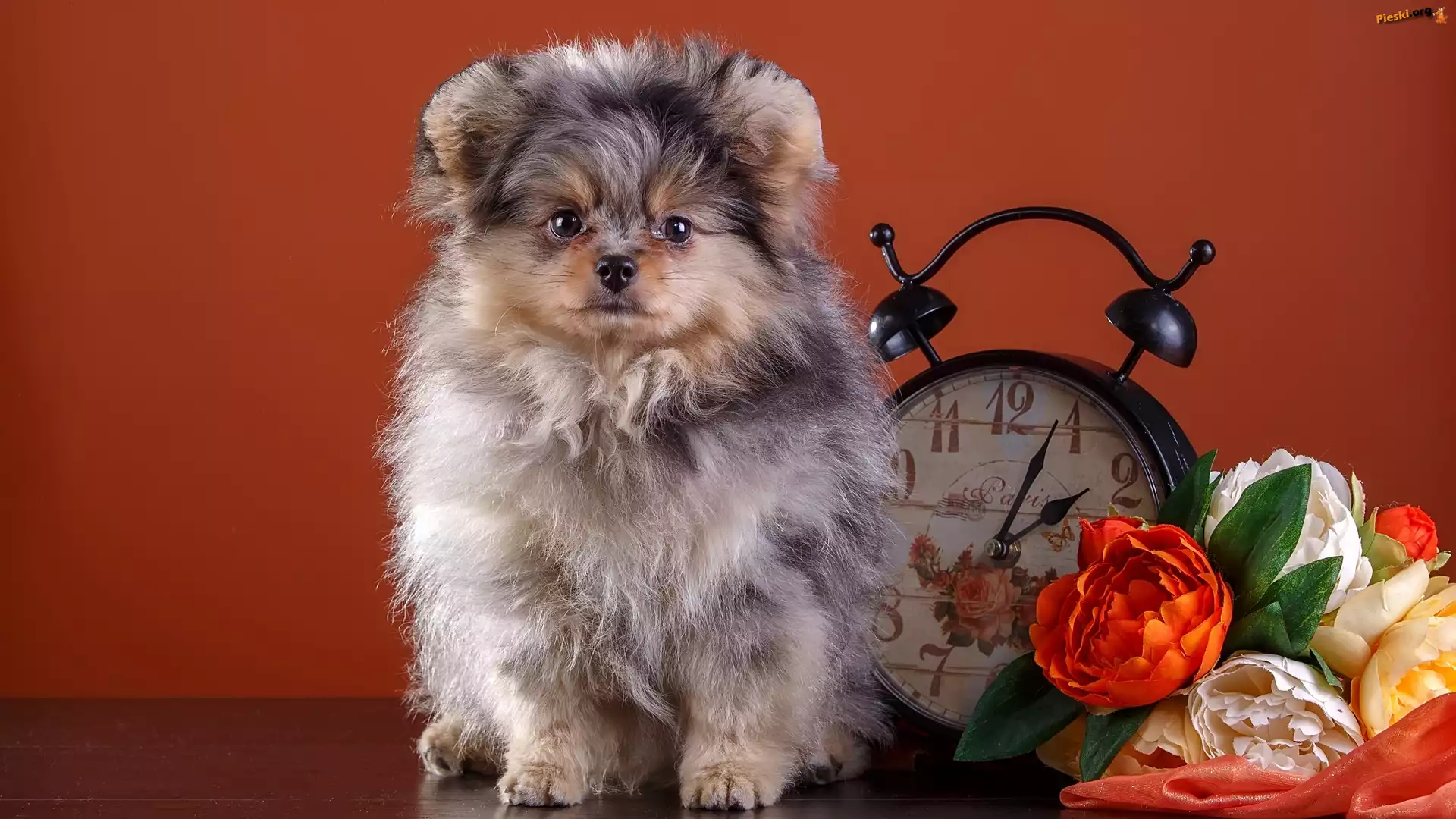 Budzik, Szpic miniaturowy, Szczeniak, Kwiaty