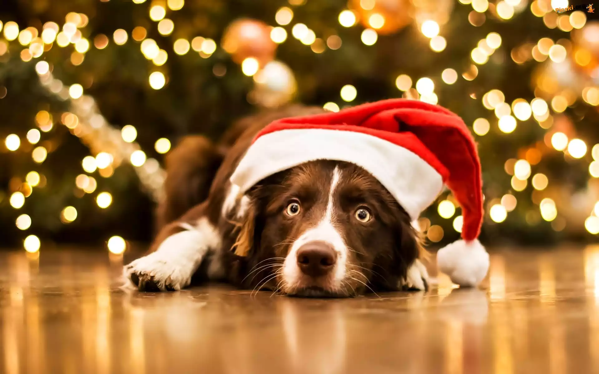 Czapka, Pies, Leżący, Border collie, Mikołaja, Pieski