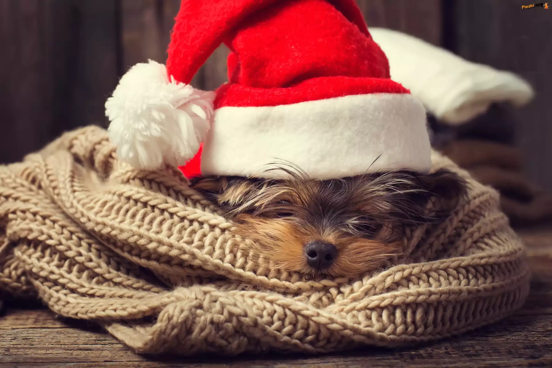 Czapka, Yorkshire terrier, Pies, Szal, Mikołaja, Pieski
