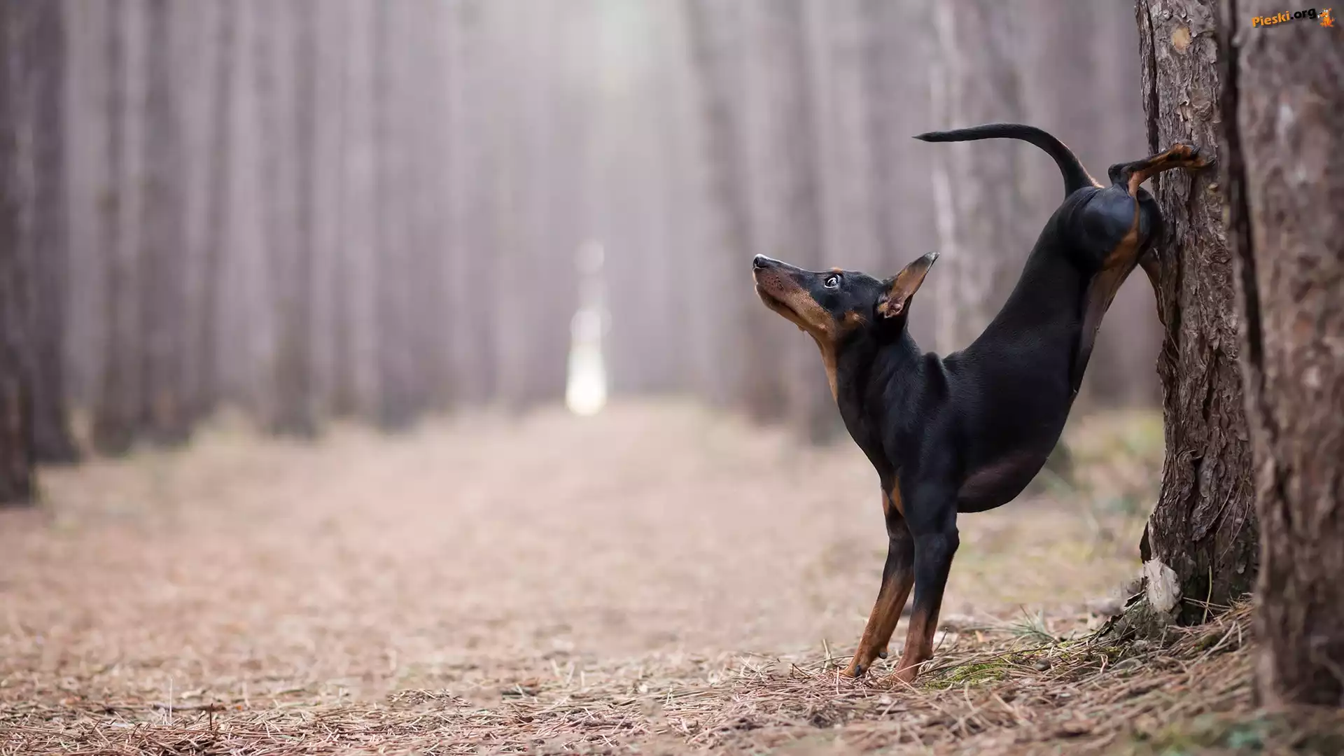 Drzewo, Pies, Pinczer, Las