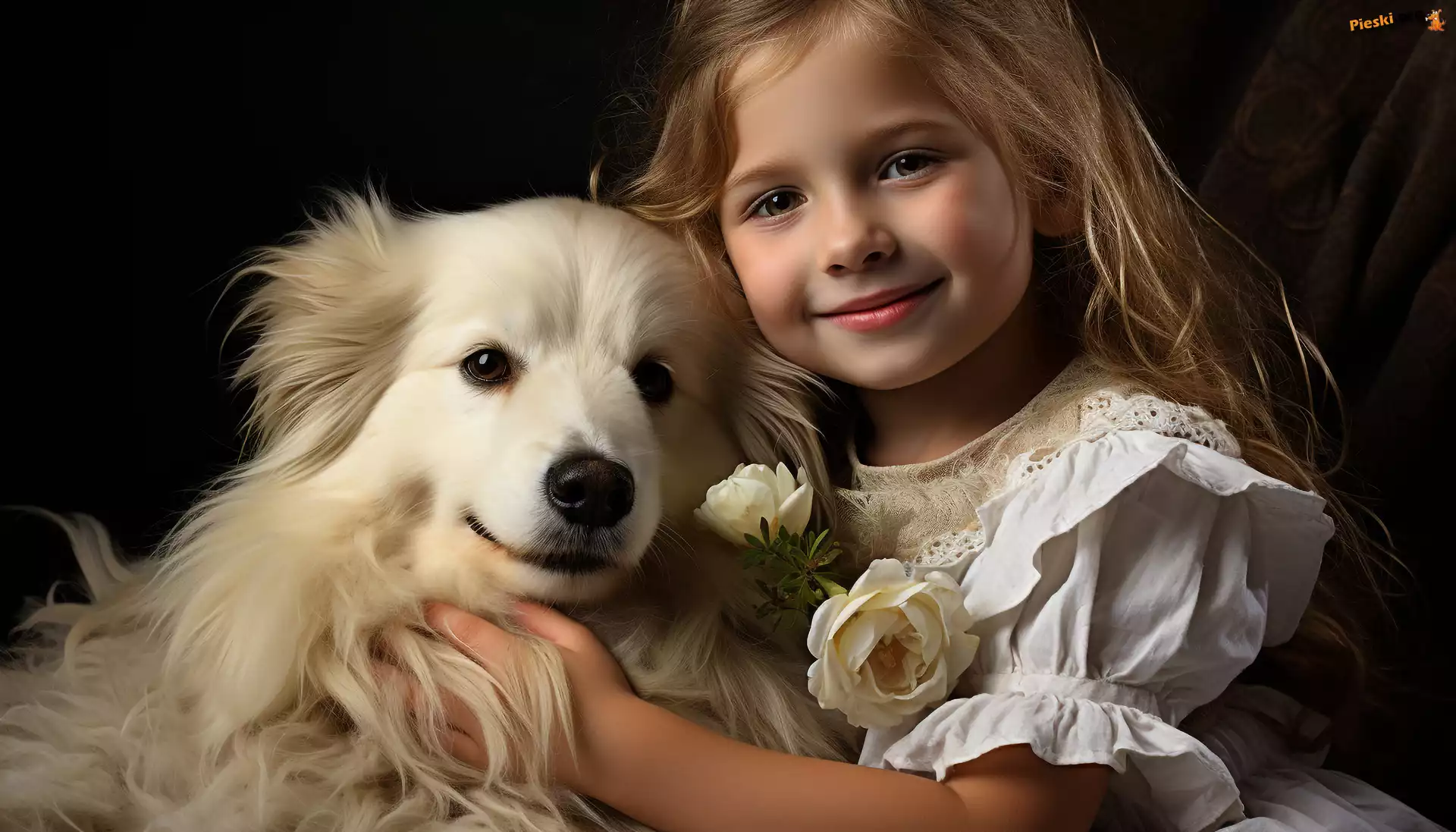 Pies, Biała, Sukienka, Dziewczynka, Biały, Kwiaty, Pieski