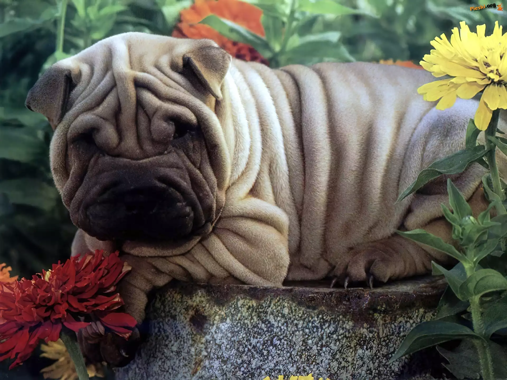 Fałdki, Shar, Pies, Pei, Kwiaty
