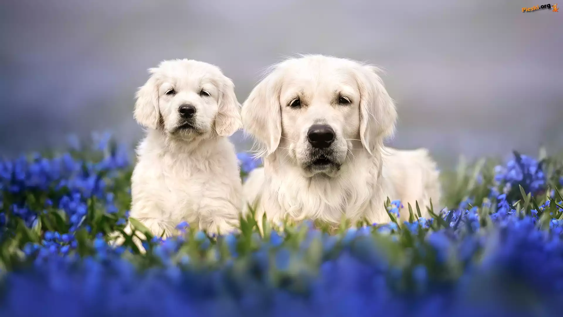 Szczeniak, Golden retriever, Dwa, Psy, Pieski