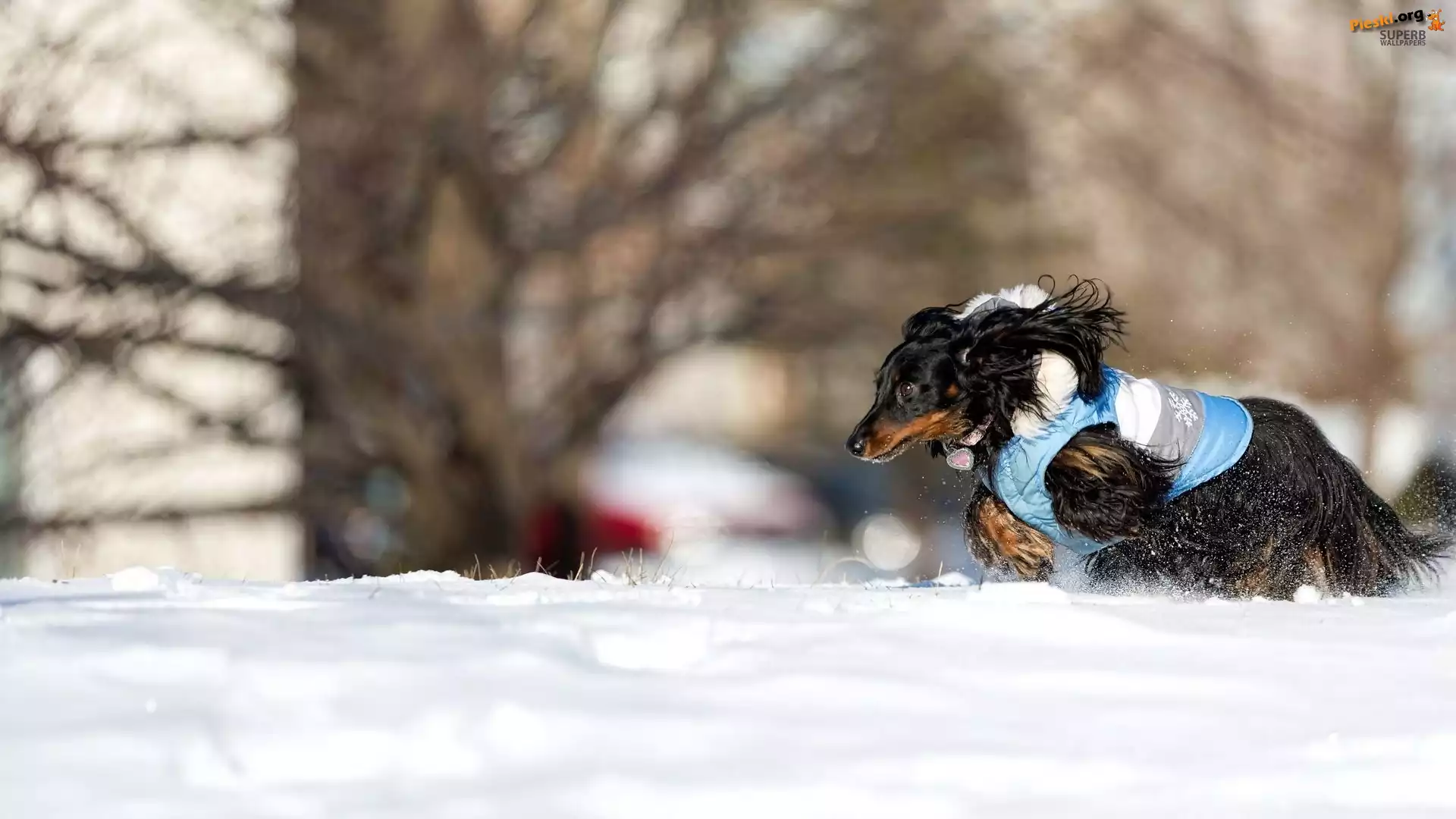 Jamnik, Zima, Śnieg, Długowsłosy, Pieski