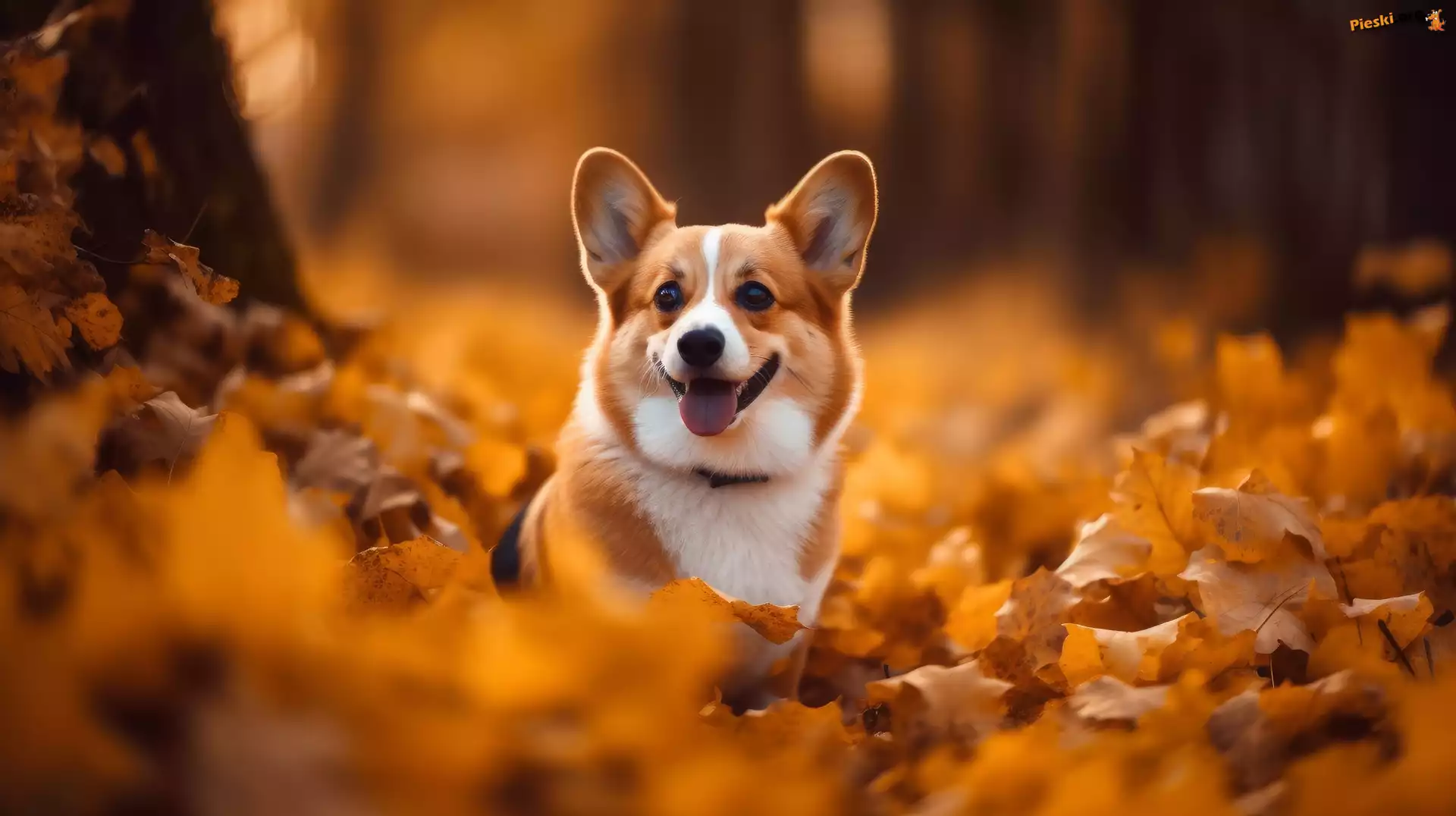 Liście, Grafika, Pies, Jesień, Welsh corgi pembroke