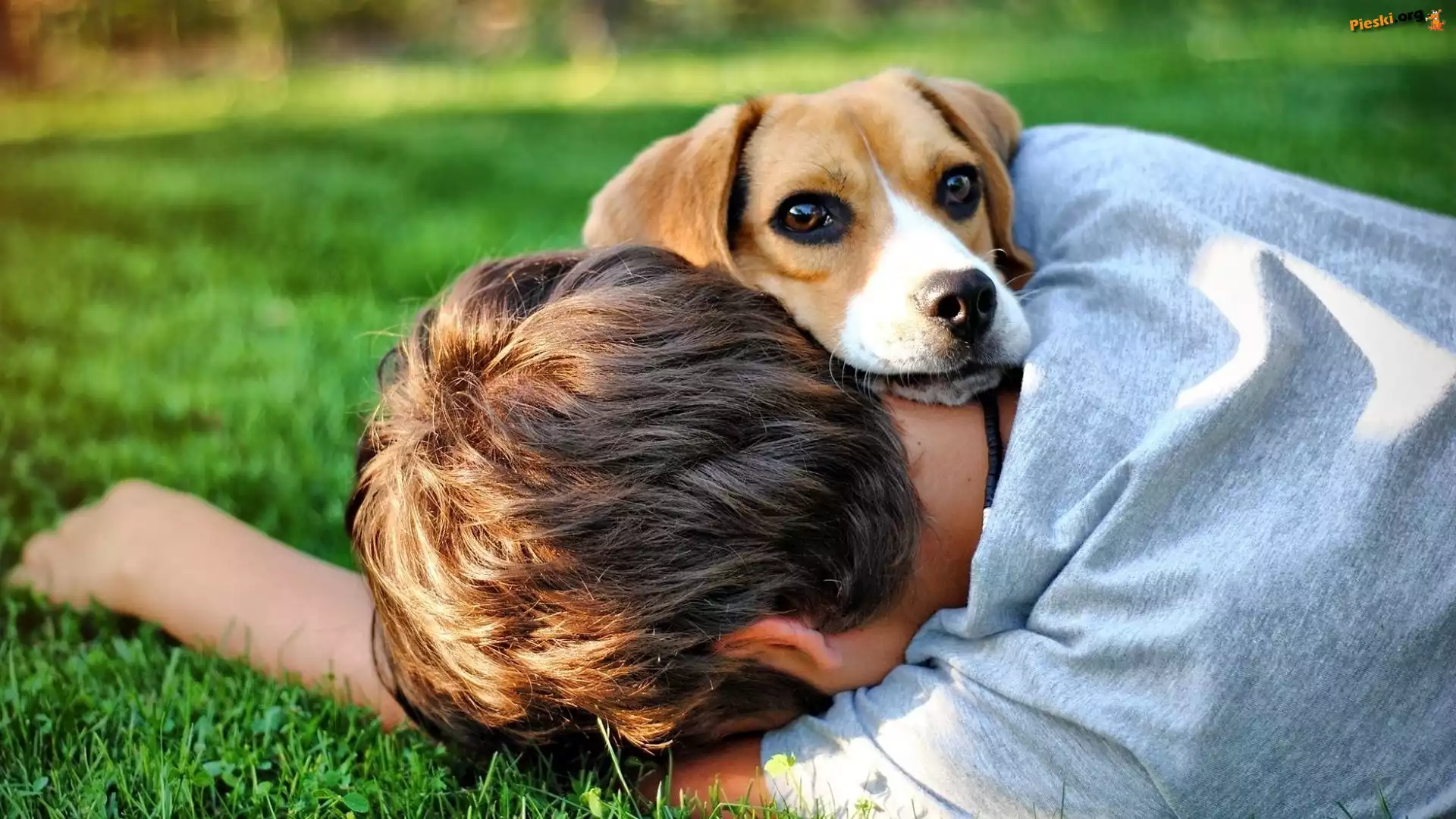 Chłopiec, Kochający, Szczeniak, Pieski