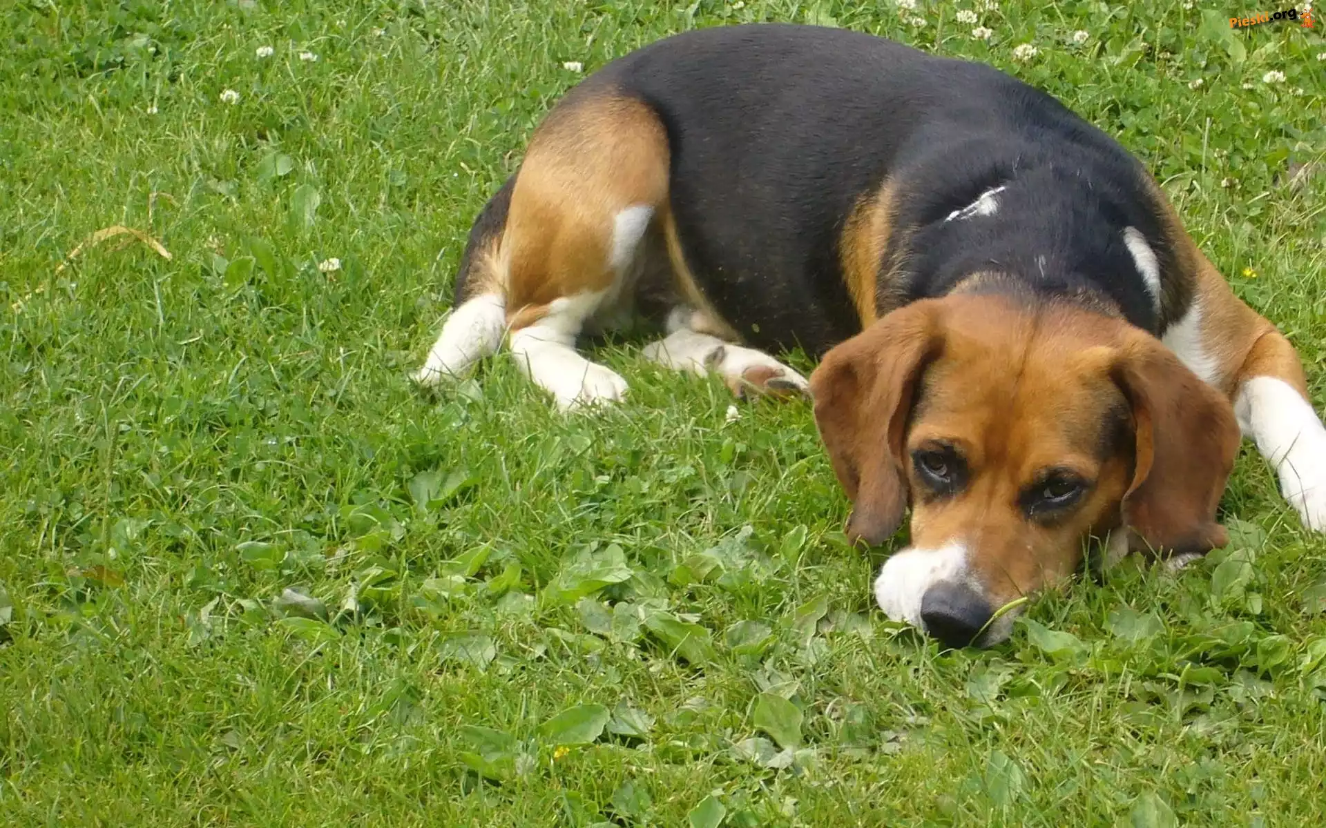 Leżący, Trawa, Łąka, Smutny, Pies, Pieski