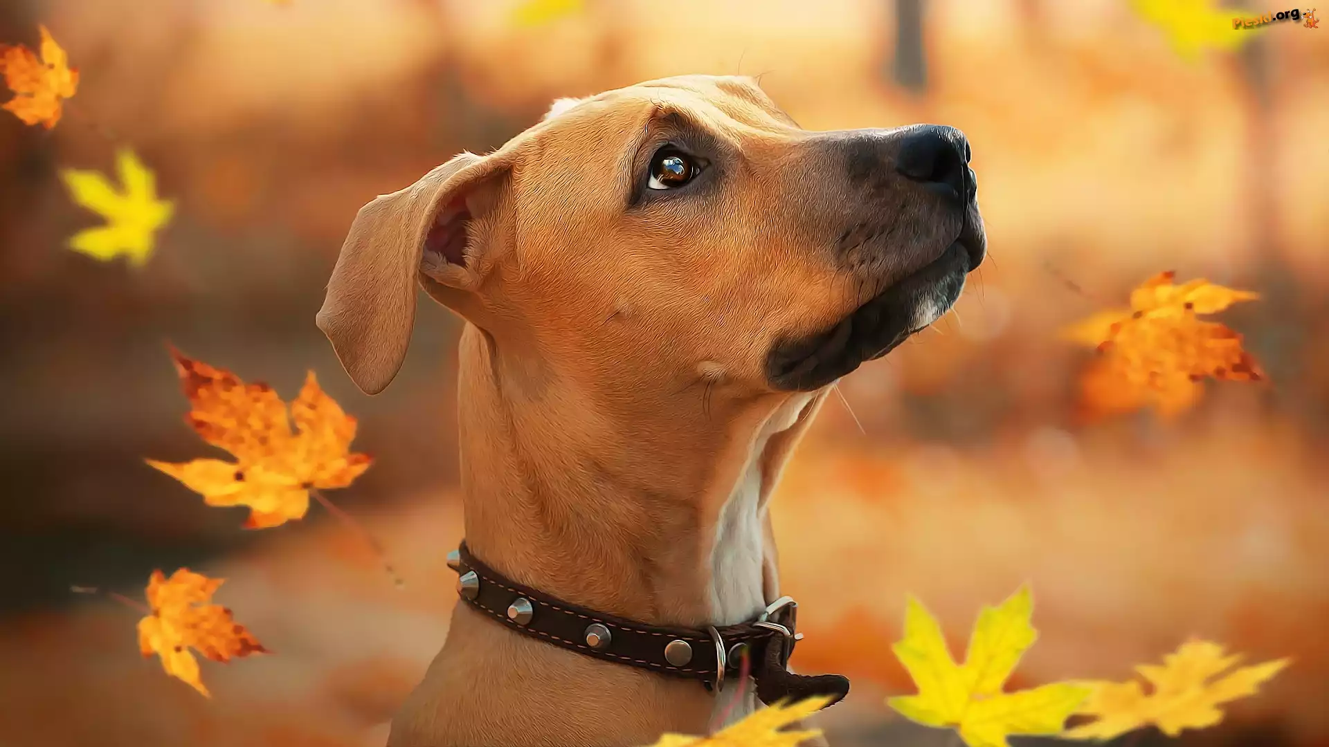 Pies, Liście, Spadające, Szczeniak, Rhodesian ridgeback, Grafika