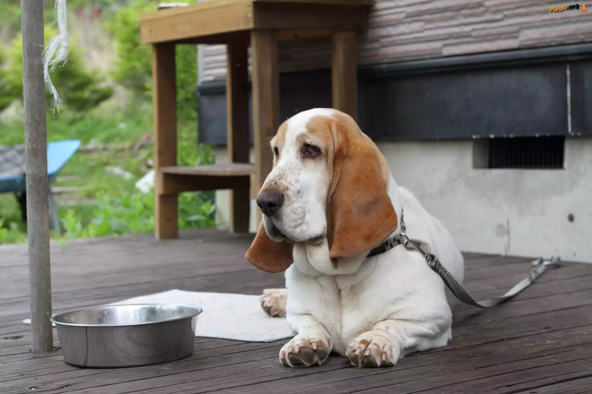 Miska, Pies, Taras, Smycz, Pieski