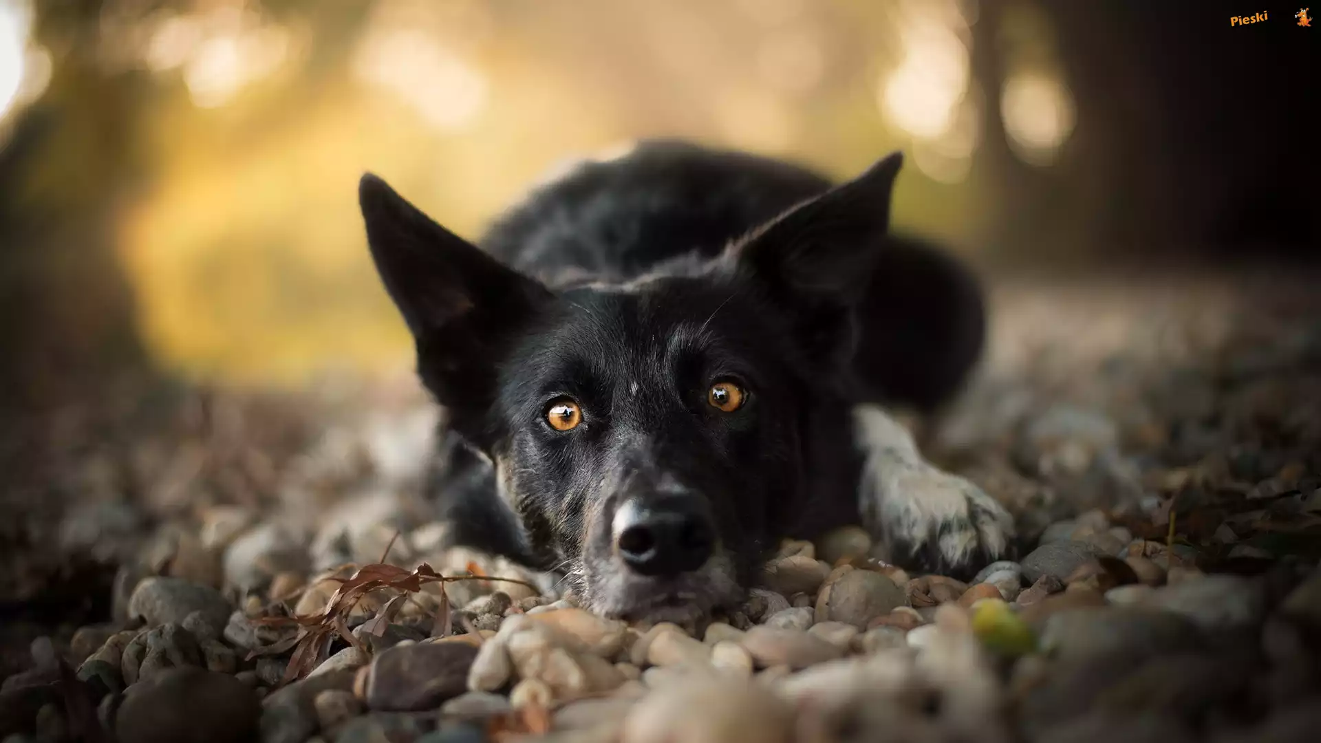 Mordka, Pies, Leżący, Border collie, Kamienie, Pieski