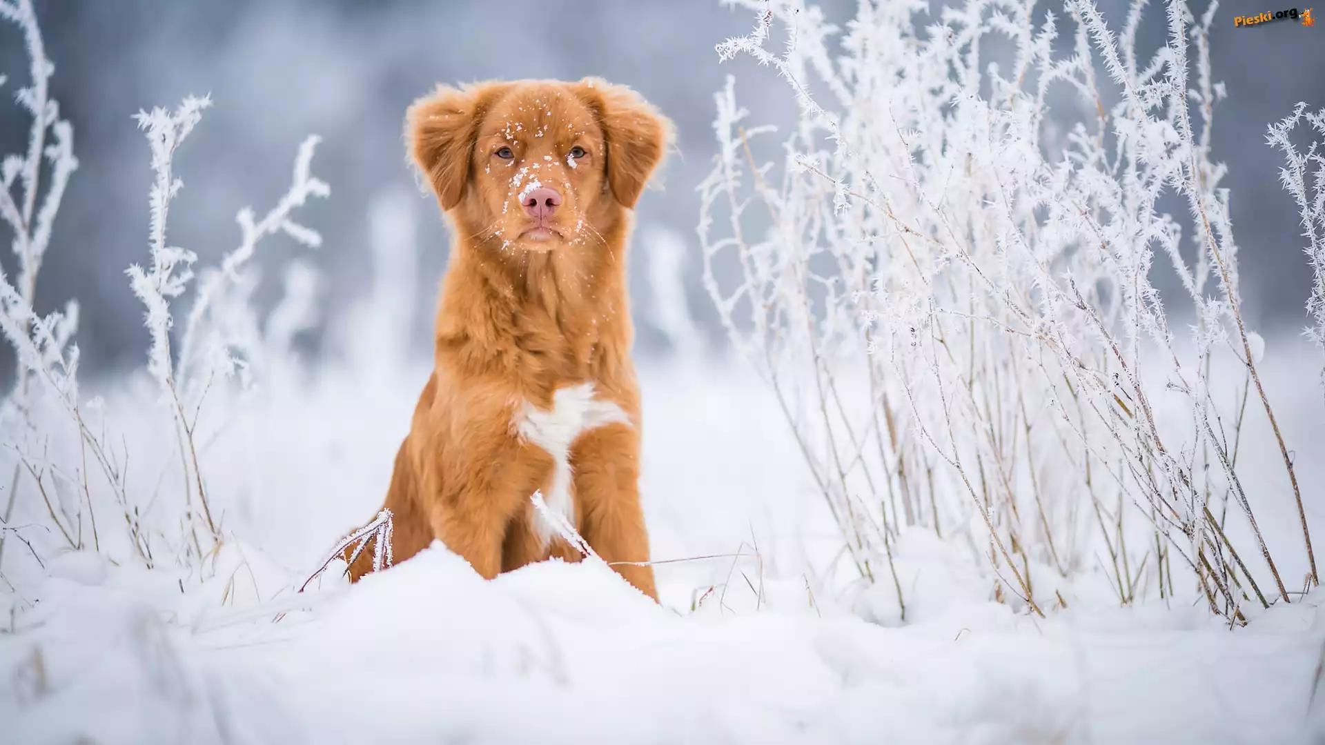 Śnieg, Pies, Retriever z Nowej Szkocji, Rośliny, Pieski