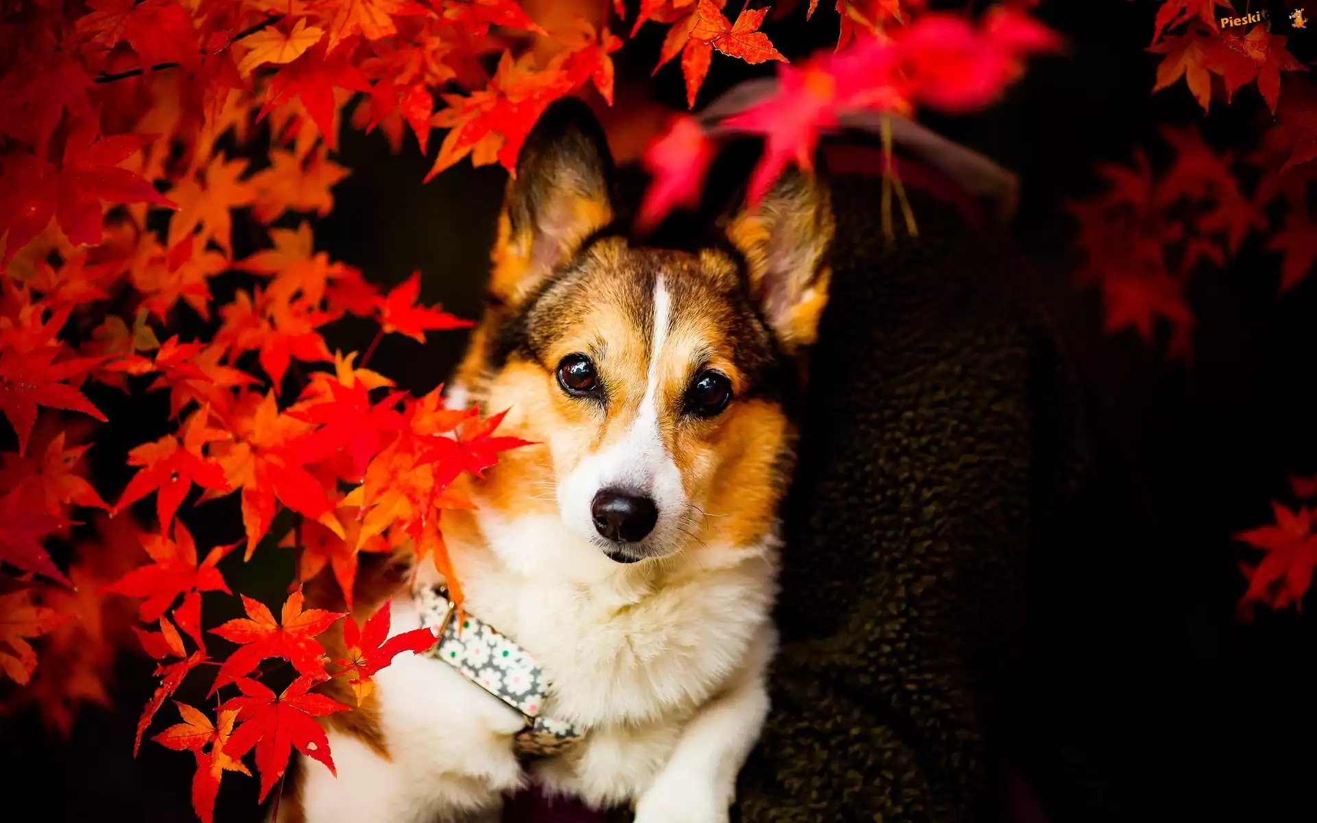 Piesek, Obroża, Liście, Pieski