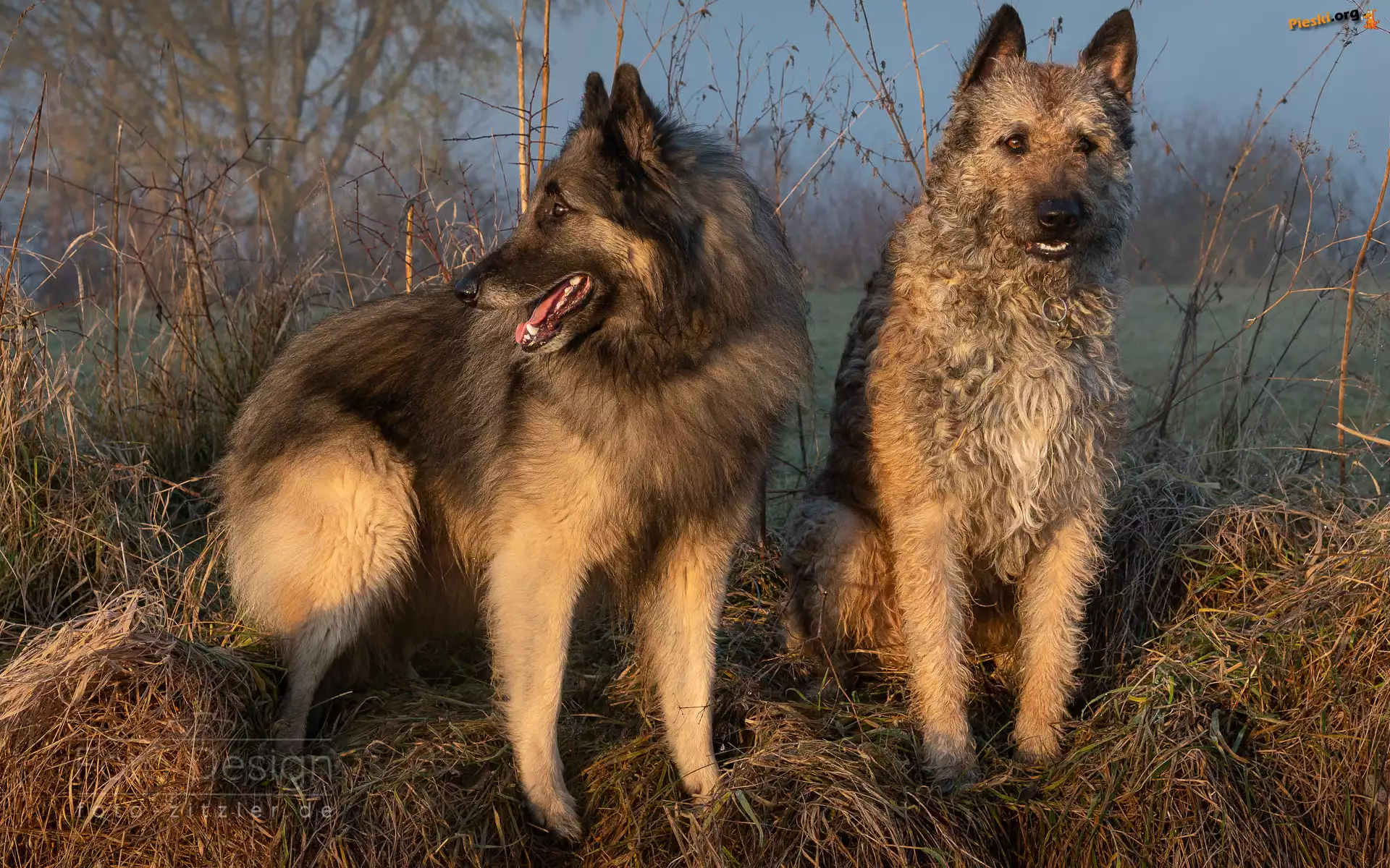 Owczarek belgijski tervueren, Trawa, Dwa, Owczarek belgijski laekenois, Psy, Pieski