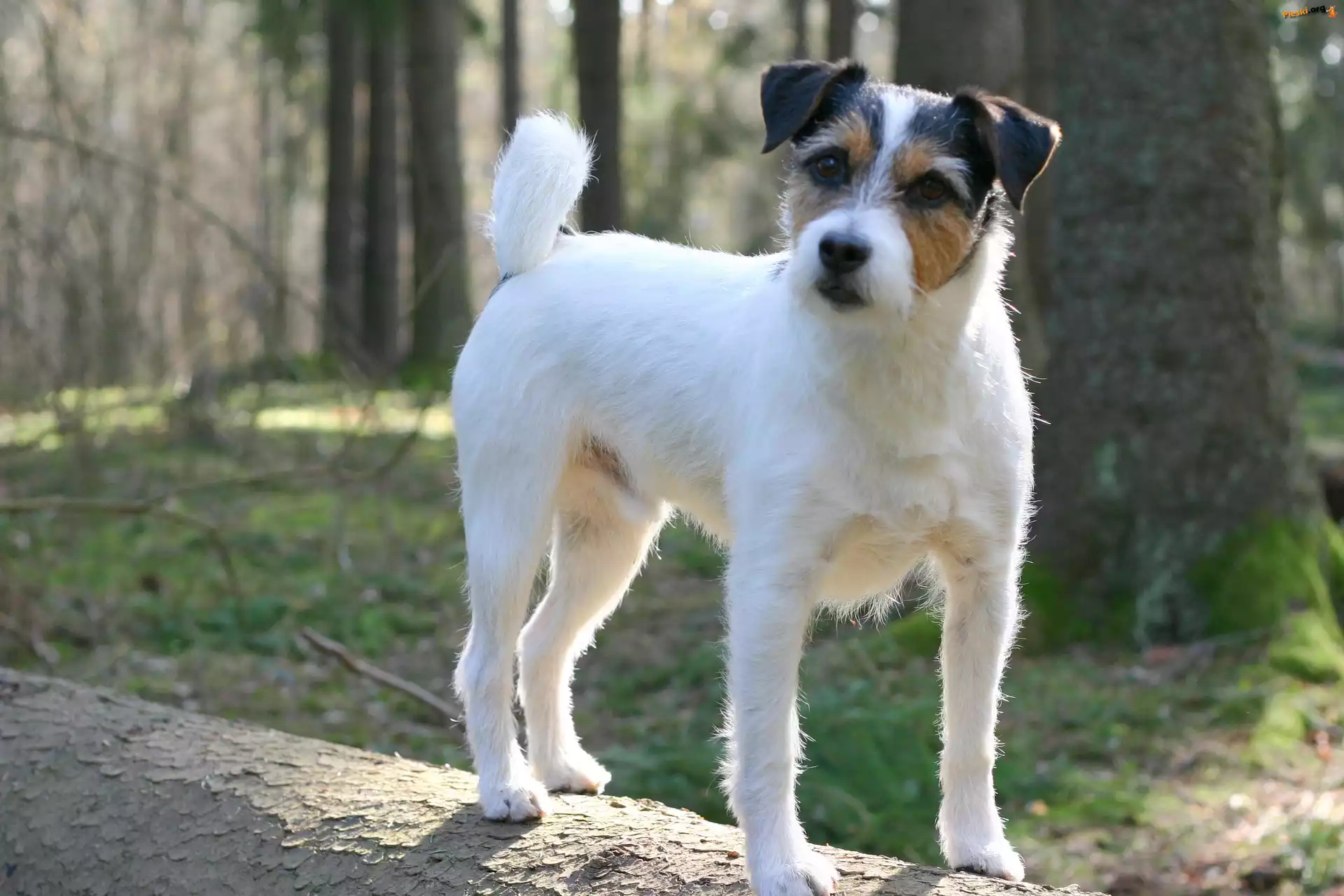 Parson Russell Terrier, most Polana, Chłopiec, Mały, Szczeniaczek, Las Parson Russell Terrier, Las Domy, Ubranko, Parson Russell Terrier głowa, Parson Russell Terriera