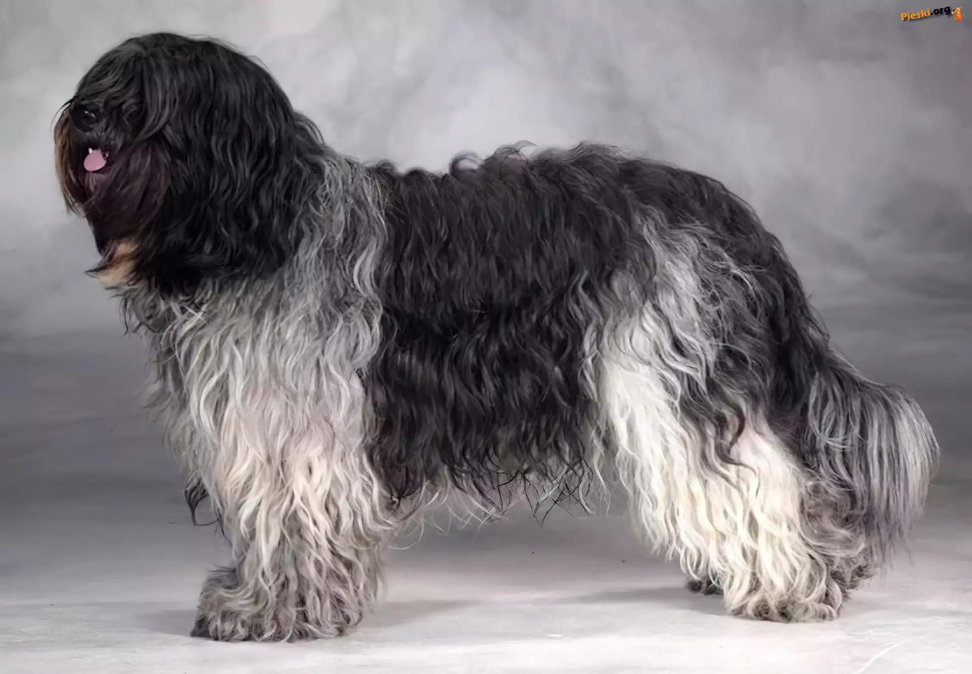 Dwa, szaroniebieskie, Schapendoesy Pasterski, Schapendoes Schapendoes, białe, kwiatki