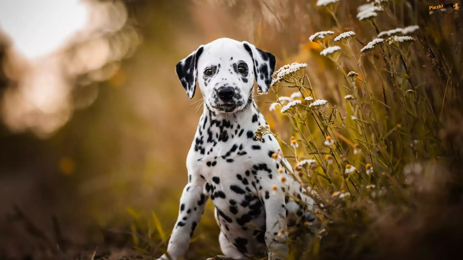 Kwiaty, Dalmatyńczyk, Szczeniak, Pies