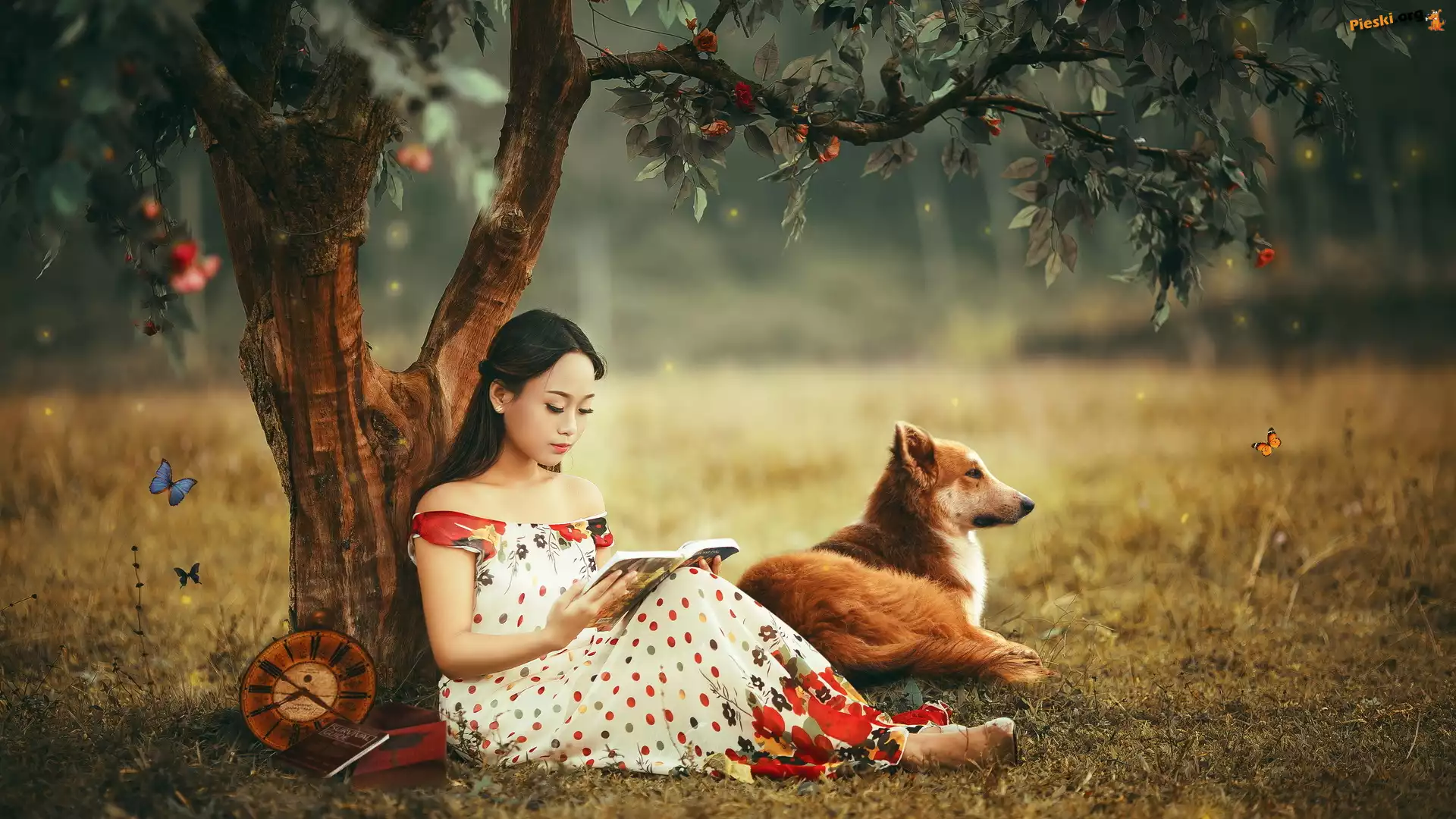 Motyle, Las, Dziewczyna, Pies
