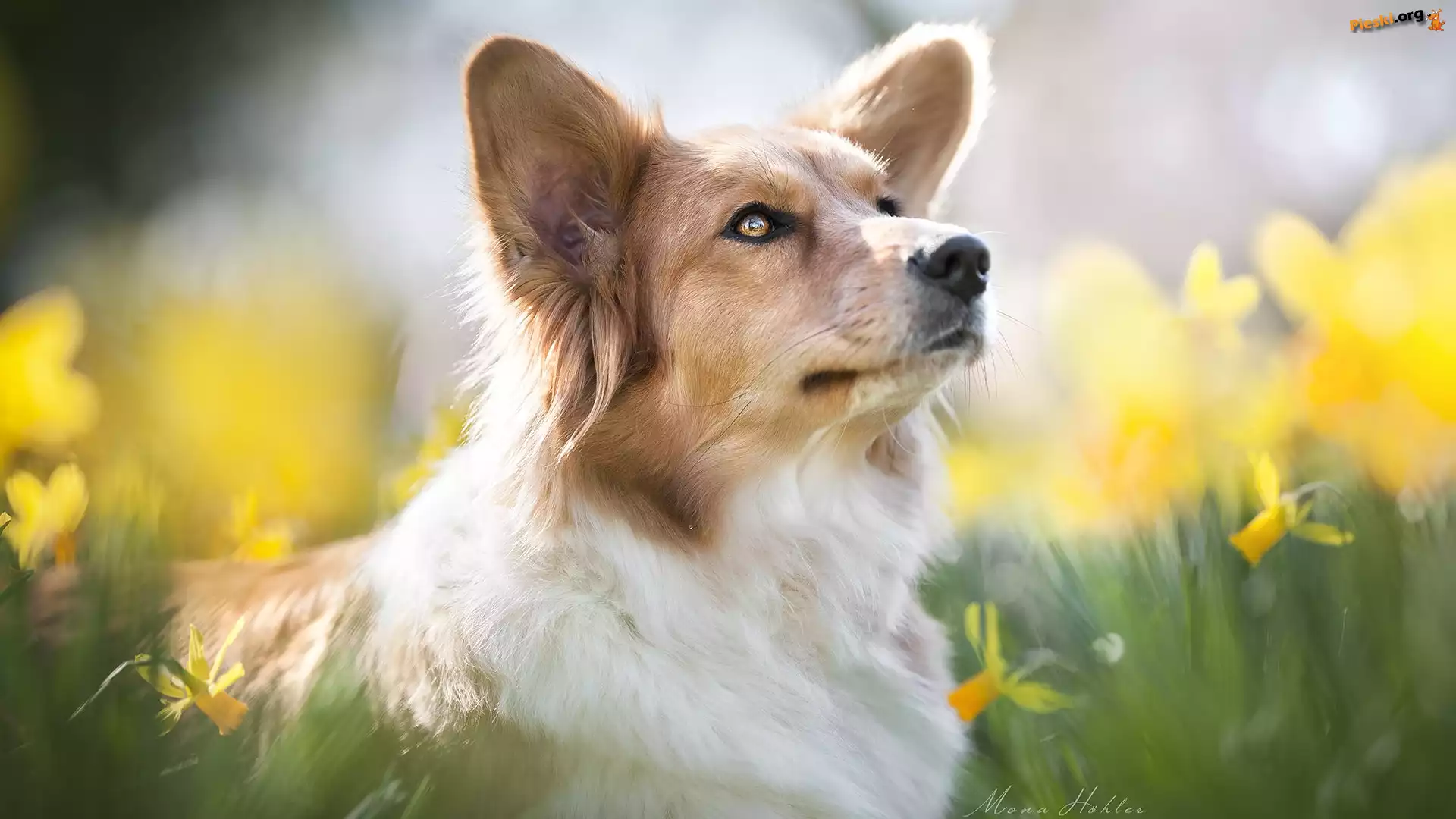 Pies, Mordka, Narcyzy żonkile, Pieski