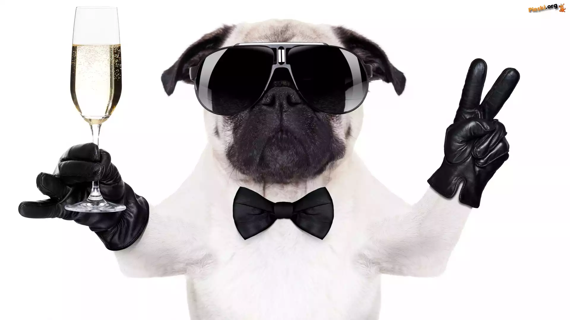 Pies, Lampka, Rękawice, Mops, Okulary, Szampan, Pieski