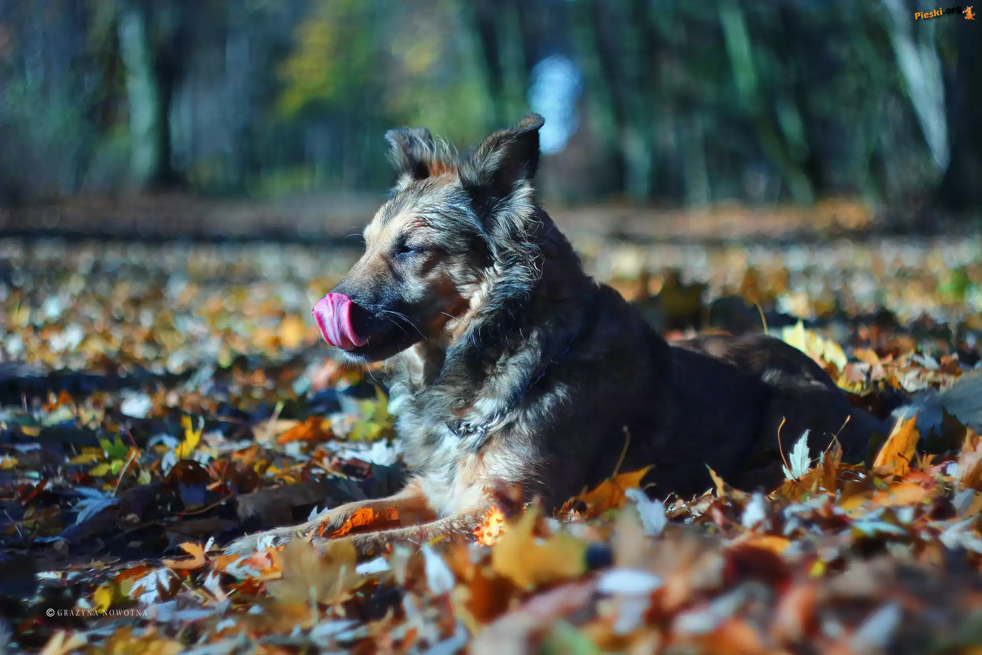 Pies, Liście, Kundelek, Suczka, Shila, Jesień, Pieski