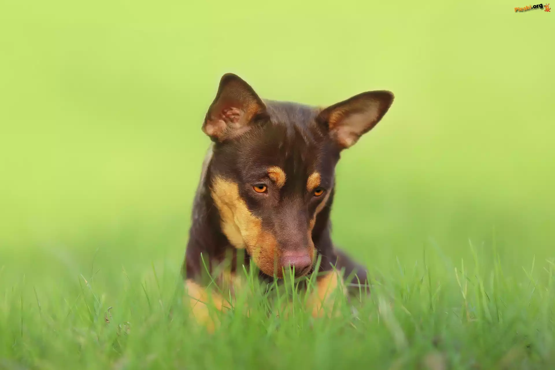 Pies, Brązowy, Smutny, Trawa, Pieski