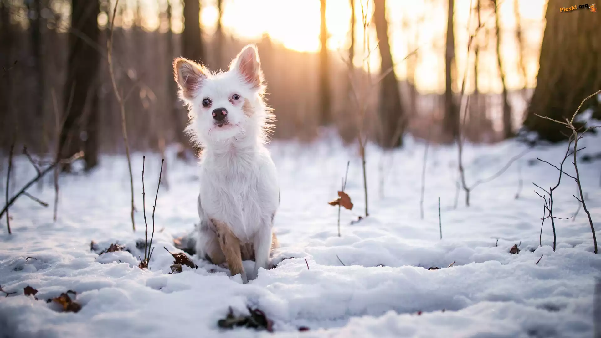 Pies, Gałązki, Śnieg, Kundelek, Zima, Drzewa, Pieski
