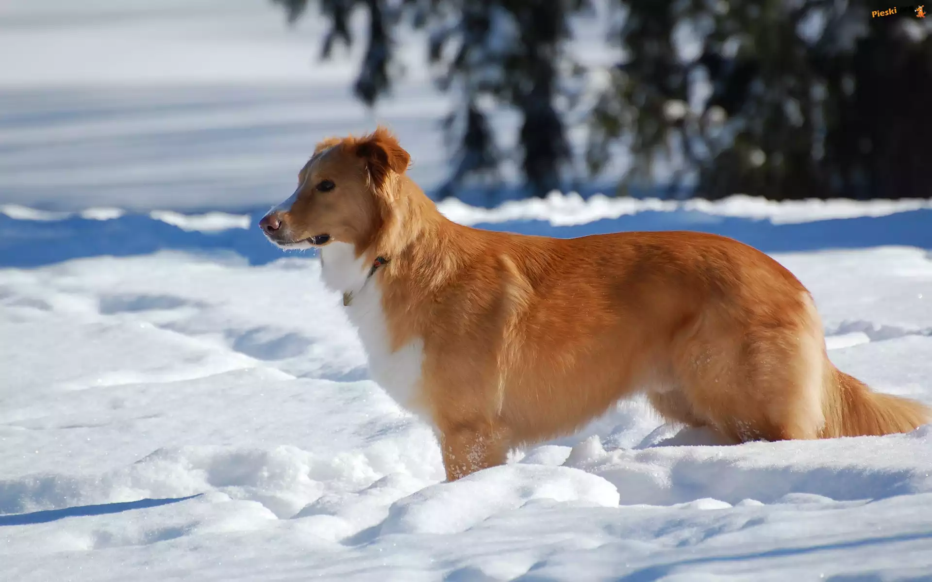 Śnieg, Rudy, Piesek, Zima