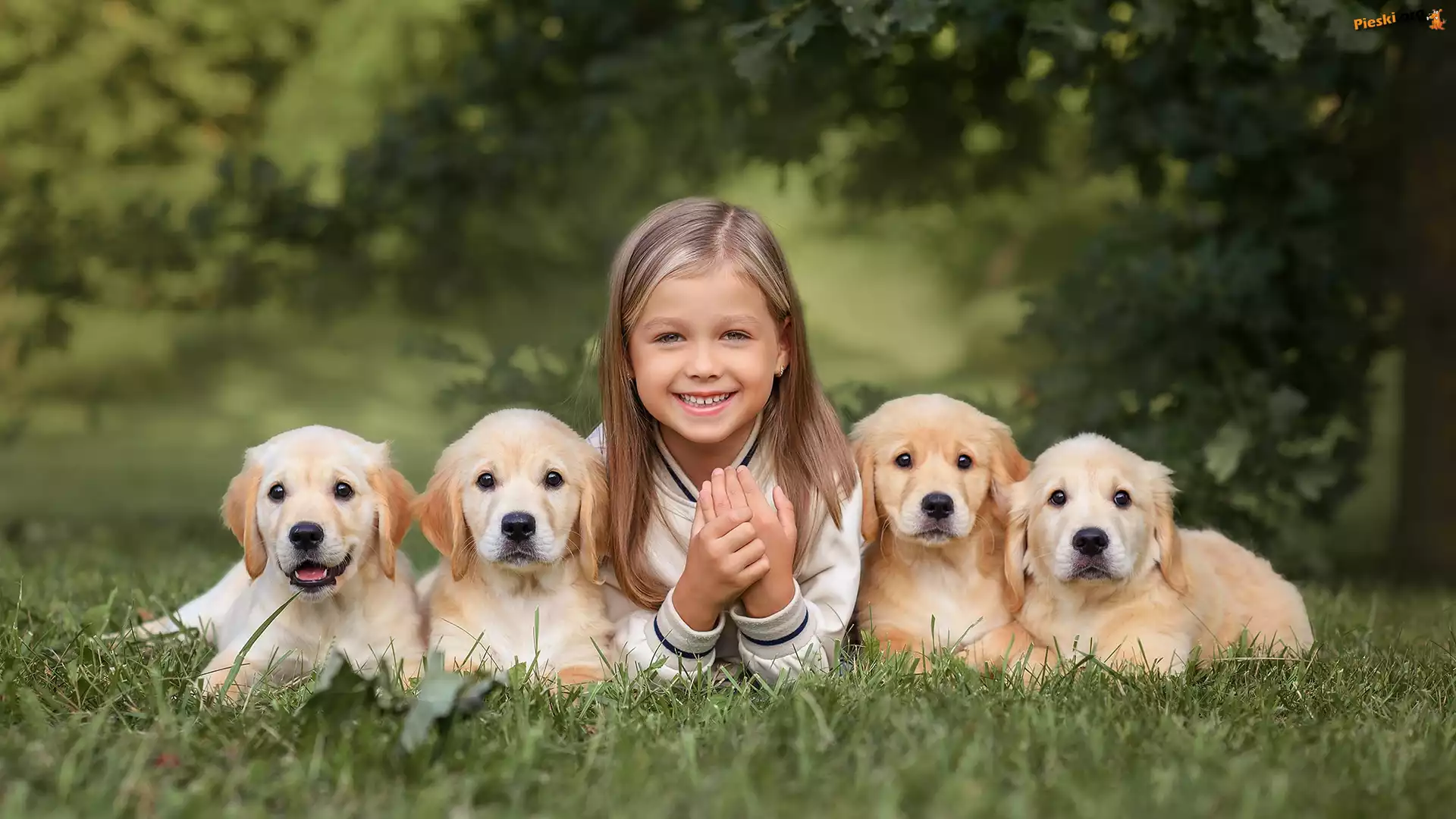 Golden retrievery, Szczeniaki, Dziewczynka, Cztery