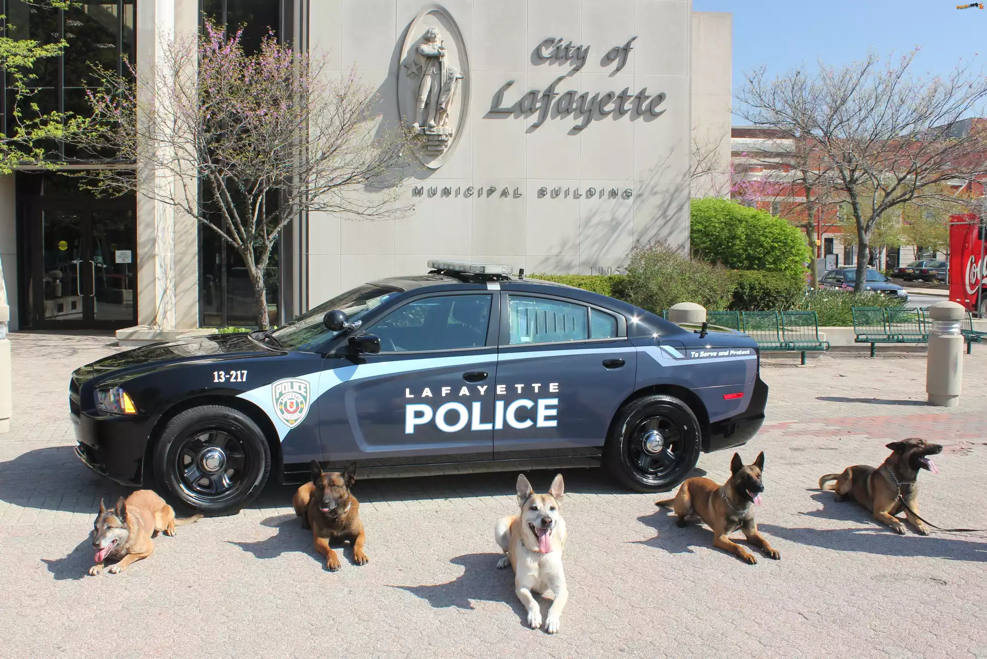 Samochód, Ulica, Psy, Dom, Policyjny, Pieski