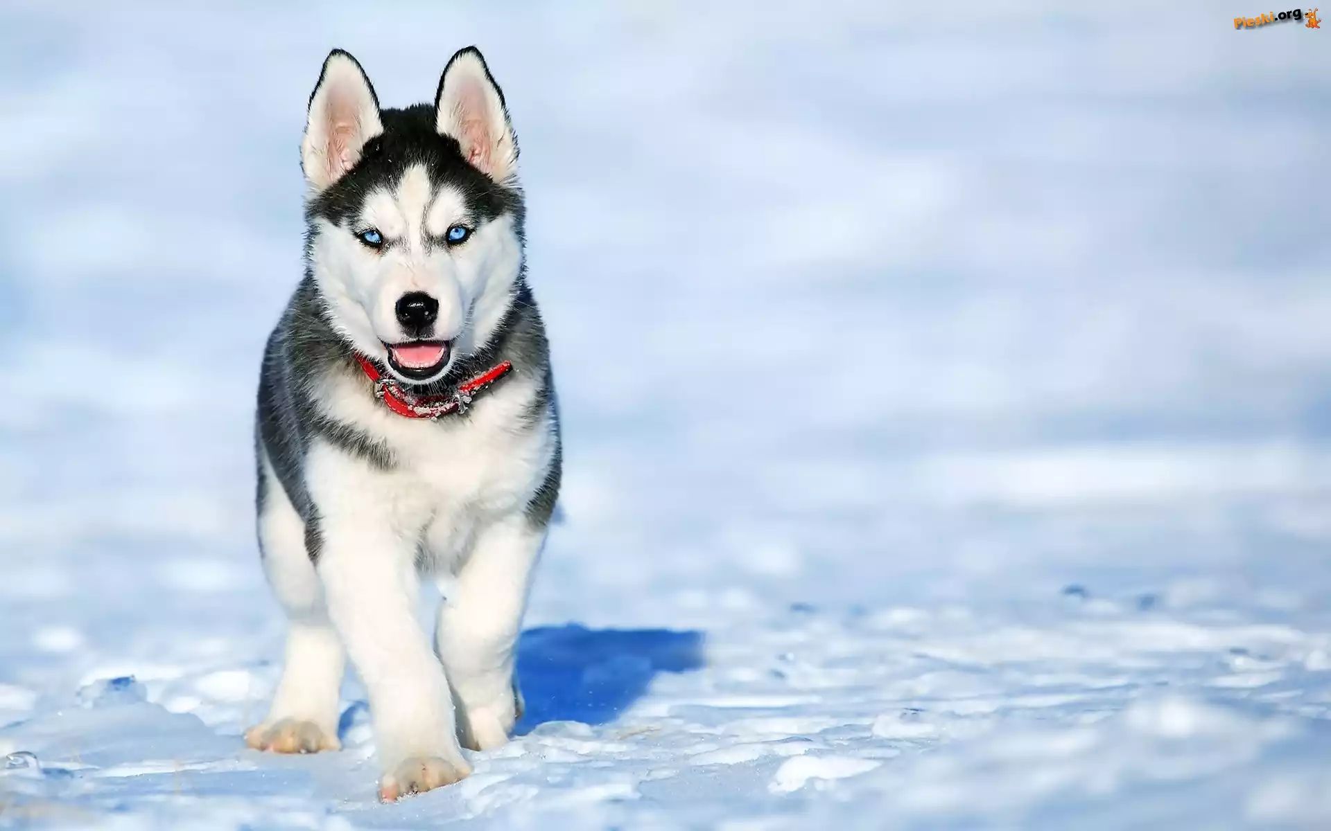 Siberian husky, Szczeniak, Śnieg, Pieski