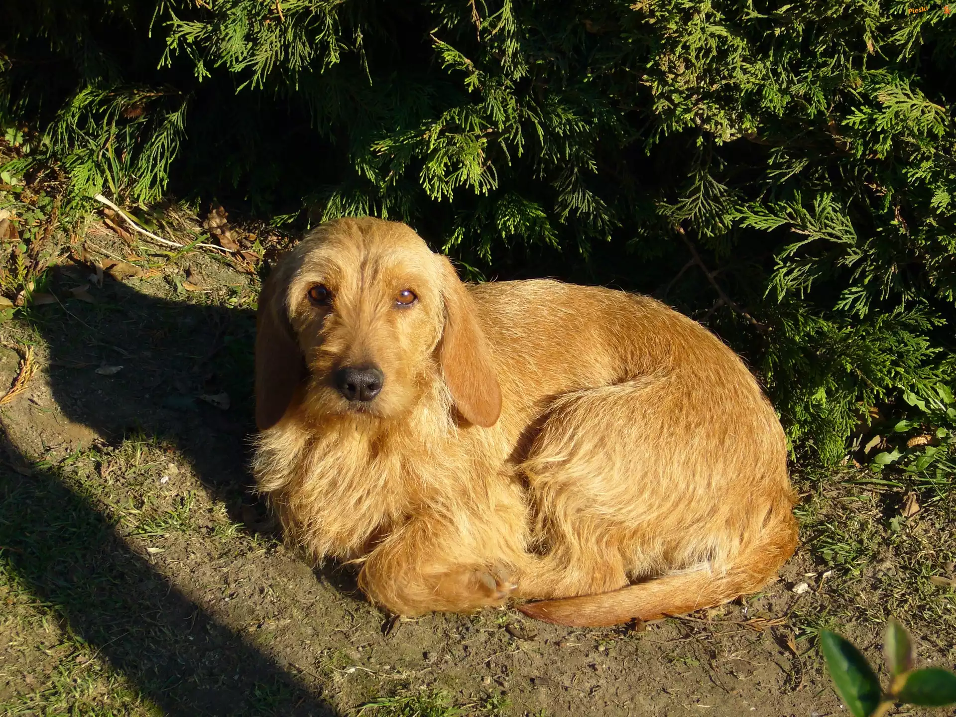 Basset Fauve de Bretagne Basset Fauve de Bretagne, dwa, słodkie, schody skulony, Basset Fauve de Bretagne