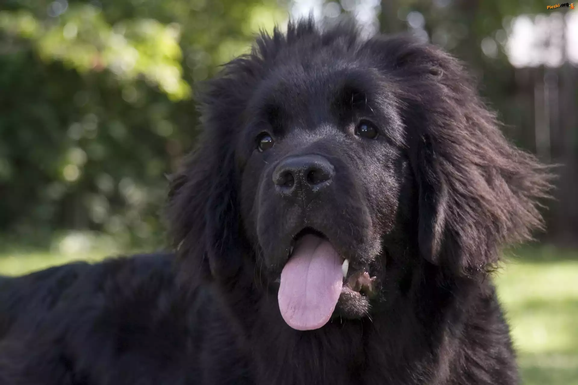 Długa, Pies, Czarna, Sierść szczeniak nowofundlanda Dwa, Szczeniaczki, Nowofundland Kwiaty, Pies, Łąka, Nowofundland Nowofundland, Pysk Nowofundland, woda brązowy, Nowofundland