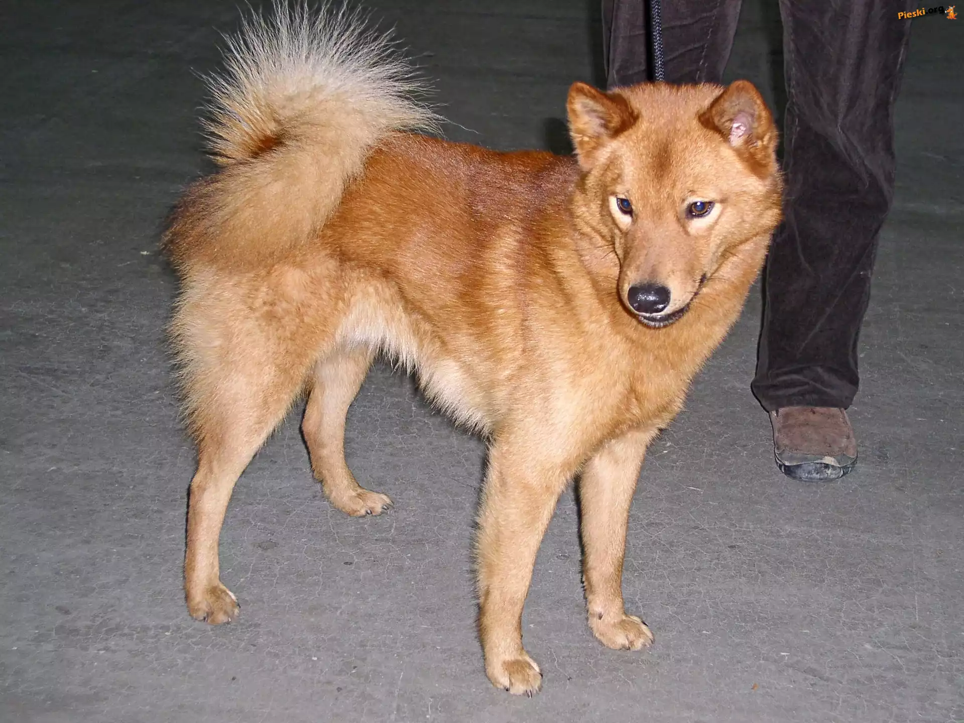 Szpic fiński rudy, leżący, Szpic fiński Szpic fiński, zielona, trawa