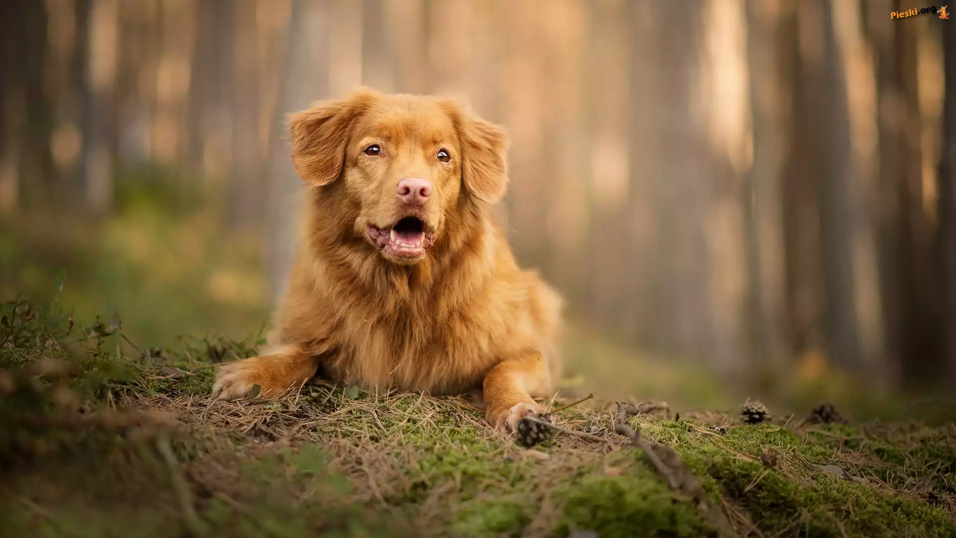 Ściółka, Retriever z Nowej Szkocji, Pies, Mordka, Szyszki, Pieski