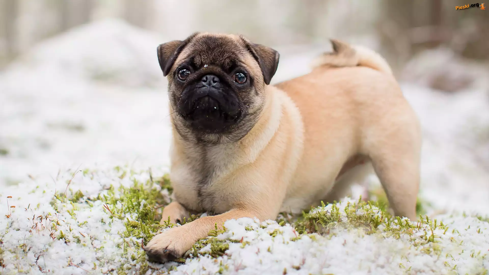Trawa, Pies, Mops, Śnieg, Pieski