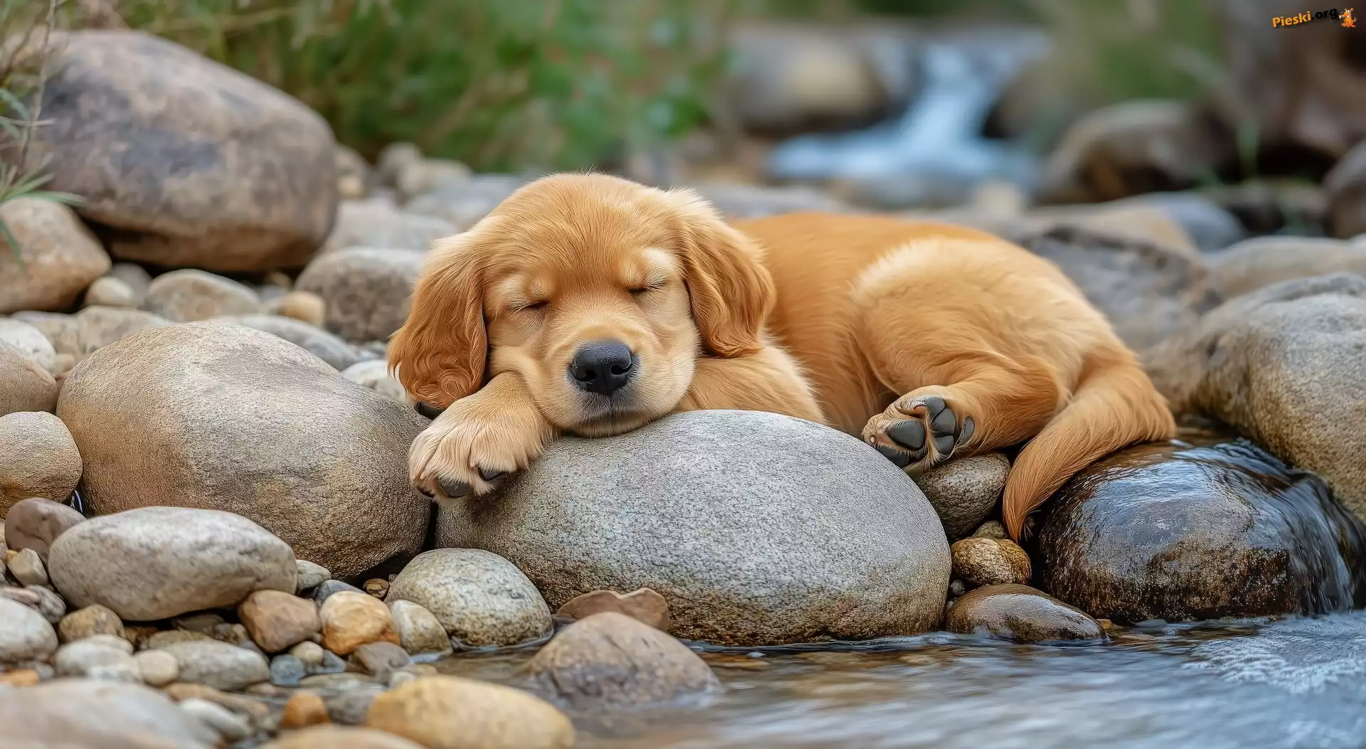 Pies, Woda, Szczeniak, Kamienie, Śpiący