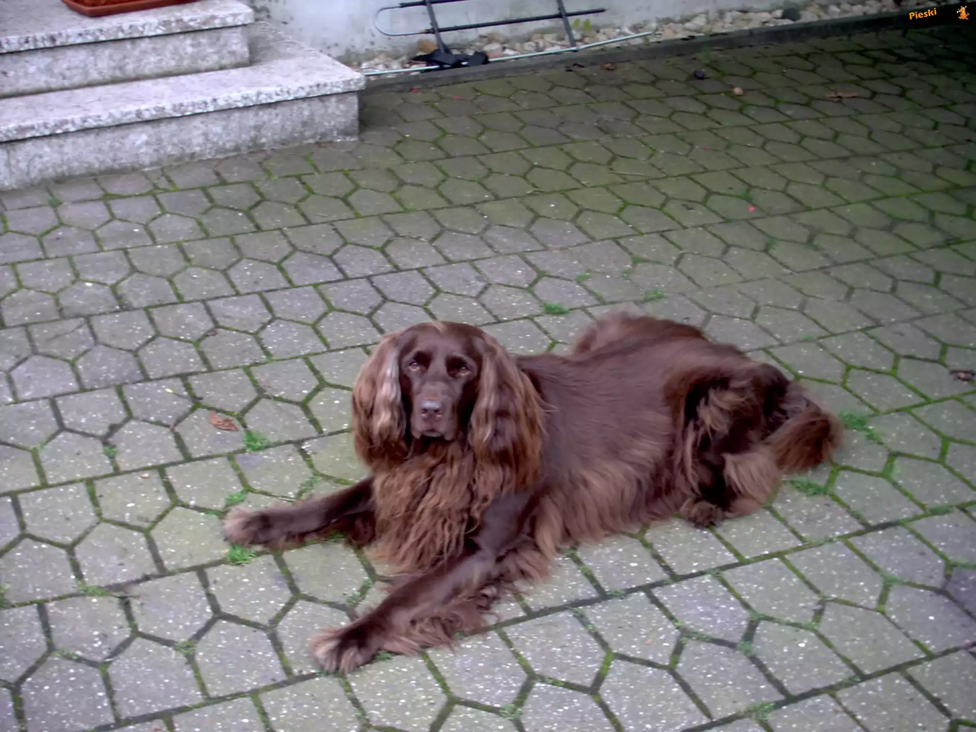 Wyżeł niemiecki długowłosy, schody, Pieski