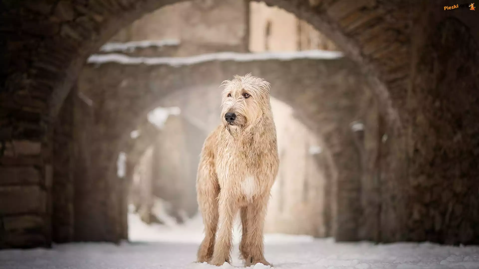 Zabudowania, Pies, Wilczarz irlandzki, Śnieg Wilczarz irlandzki, Szczeniak Wilczarz irlandzki trawa, zielona, Wilczarz irlandzki Rozmyte, Wilczarz irlandzki, Pies, Śnieg, Tło Pysk, kły, Wilczarza irlandzkiego