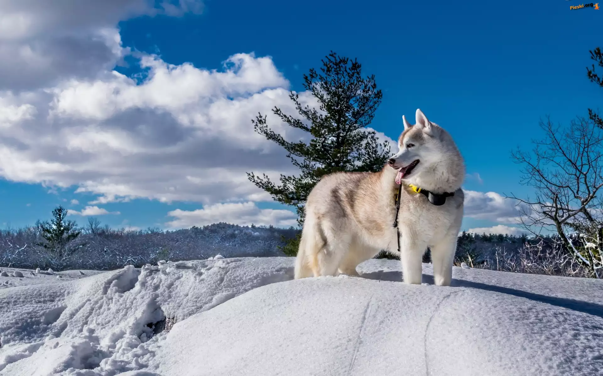 Zima, Siberian Husky, Pies, Krajobraz, Pieski